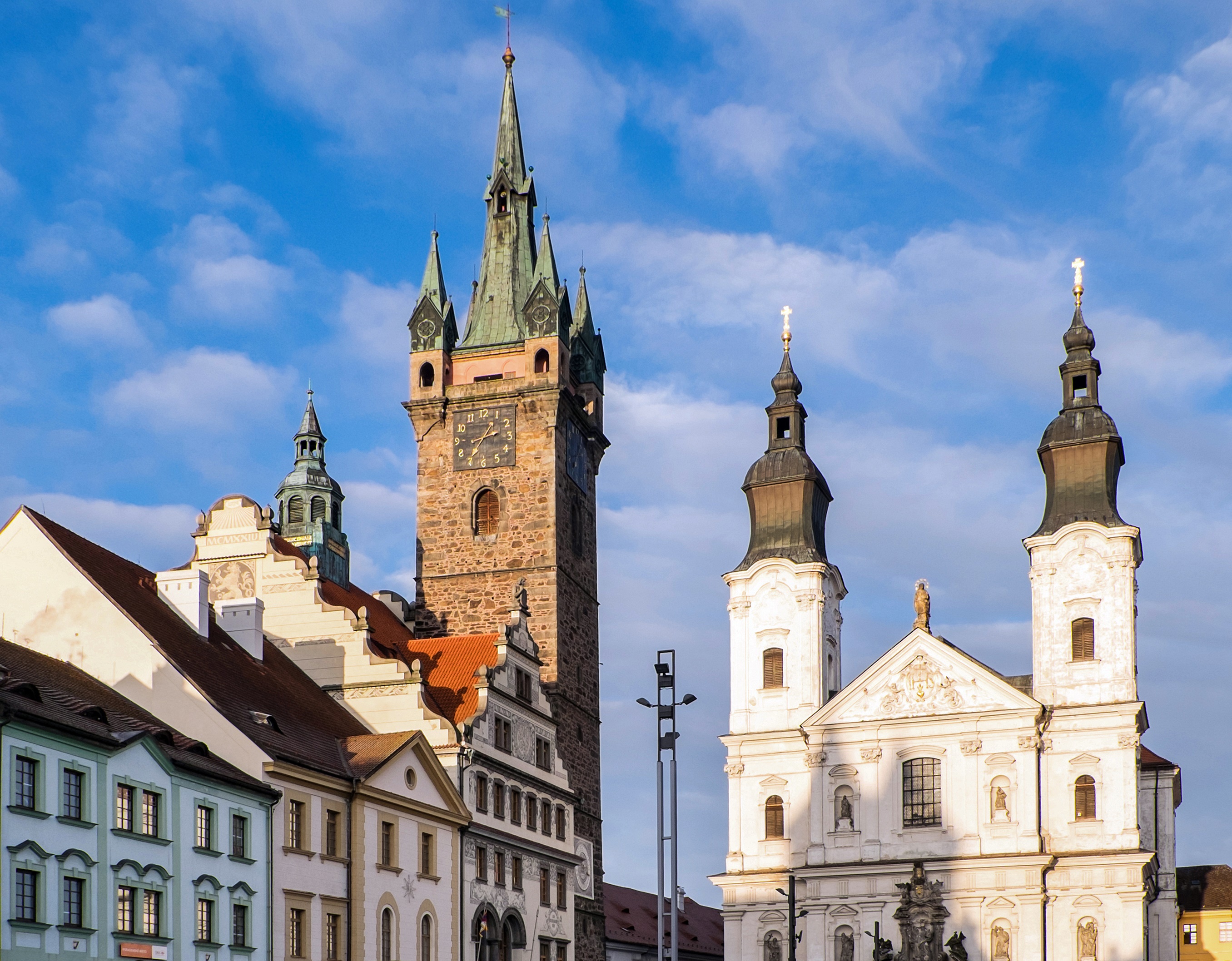 Klatovy mají nepřehlédnutelnou dominantu: Černou věž. Gotická věž sousedí s renesanční budovou radnice a jezuitskou kolejí, je vysoká přes 80 metrů a vede na ni 226 schodů.