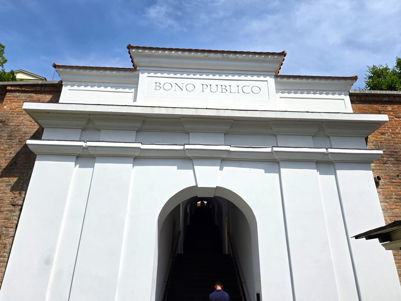 Schodiště Bono publico dlouhé 37,5 metru je postavené z dubových fošen v empírovém slohu. Tvoří ho čtyři kratší schodiště oddělená podestami. Vstoupit sem můžete nejen z Velkého náměstí nebo z ulice Komenského, ale i z parku a teras. Nad krytým schodištěm jsou tři věžičky, které svými kopulemi prostor osvětlují a dodávají mu nevšední atmosféru. Stejně jako hudba, kterou si při cestě po schodech můžete sami zvolit.