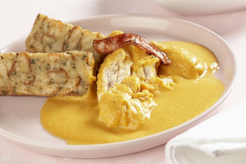 6. Šťávu přecedíme, zeleninu propasírujeme, zalijeme smetanou s moukou a povaříme.