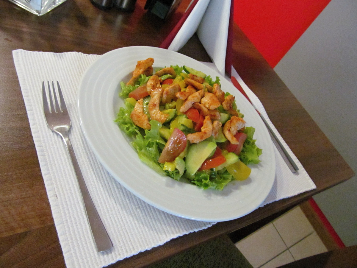 Očištěná kuřecí prsa nakrájíme přes vlákna na hranolky, osolíme, zakapeme olejem, promícháme a v chladu necháme alespoň 20 minut odpočinout. Mezi tím si připravíme avokádový dip.