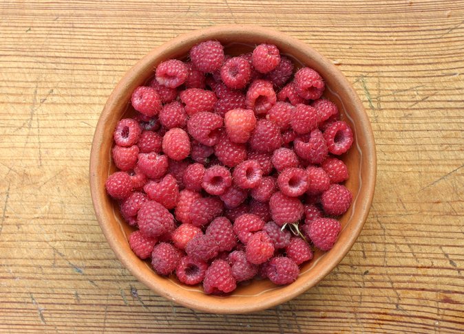 Suroviny na na polevu: 2 lžíce másla, 2 šálky cukru, zbytek malin, vanilkový cukr