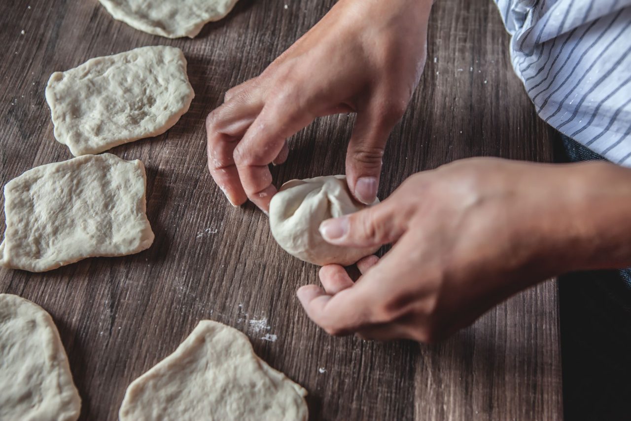Z hotového těsta vyválíme váleček, který nařežeme na kostičky. Kostičky pak rukou rozmáčkneme na placku, do které dáme trochu bramborové kaše. Zabalíme ji jako buchty do podoby kulatého knedlíku – podobného těm ovocným.