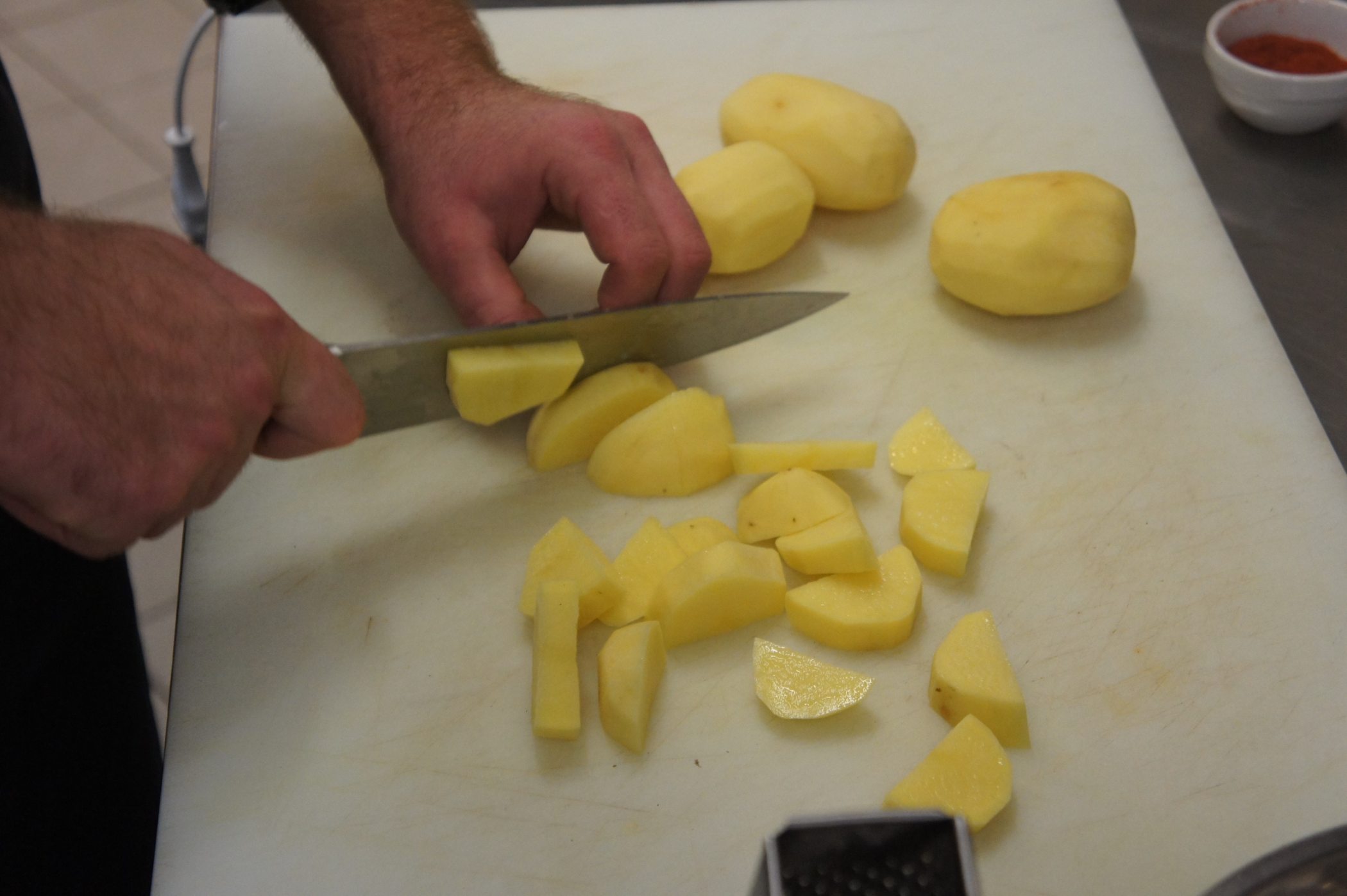 1. Brambory oloupeme, nakrájíme a uvaříme v mírně osolené vodě.