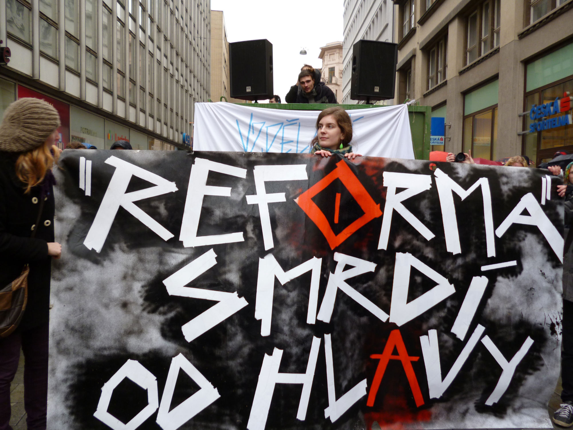 „Vadí nám předkládané návrhy reformních zákonů, vadí nám omezení samosprávy vysokých škol, snížení počtu studentů v akademických senátech a vůbec snížení váhy těch senátu. A také nesouhlasíme s věcným návrhem zákona o finanční pomoci studentům,“ shrnul za pořadatele důvody protestu Zdeněk Ručka z Masarykovy univerzity.